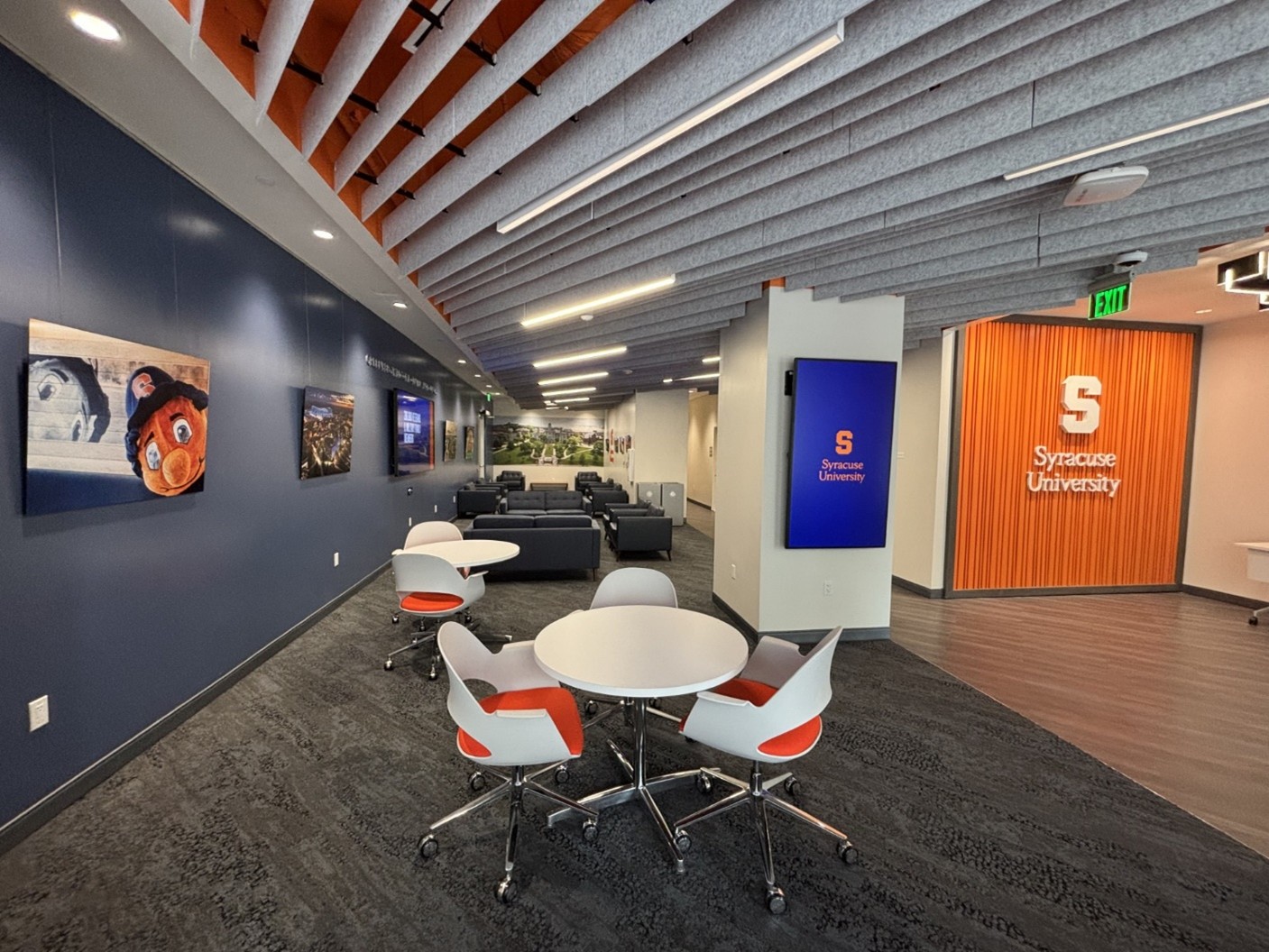 Featuring a street-level entrance off 19th St. NW, the Greenberg Welcome Center and Lounge is a versatile space for guest check-ins, casual receptions, watch parties, certain types of speakers, and more.