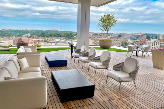SUDC has access to a large lounge area on the building’s rooftop level, which is shared among the building’s tenants. With indoor/outdoor access and panoramic views of Washington, the lounge is best suited for large receptions or as a pre-event space for events held in the rooftop conference room.